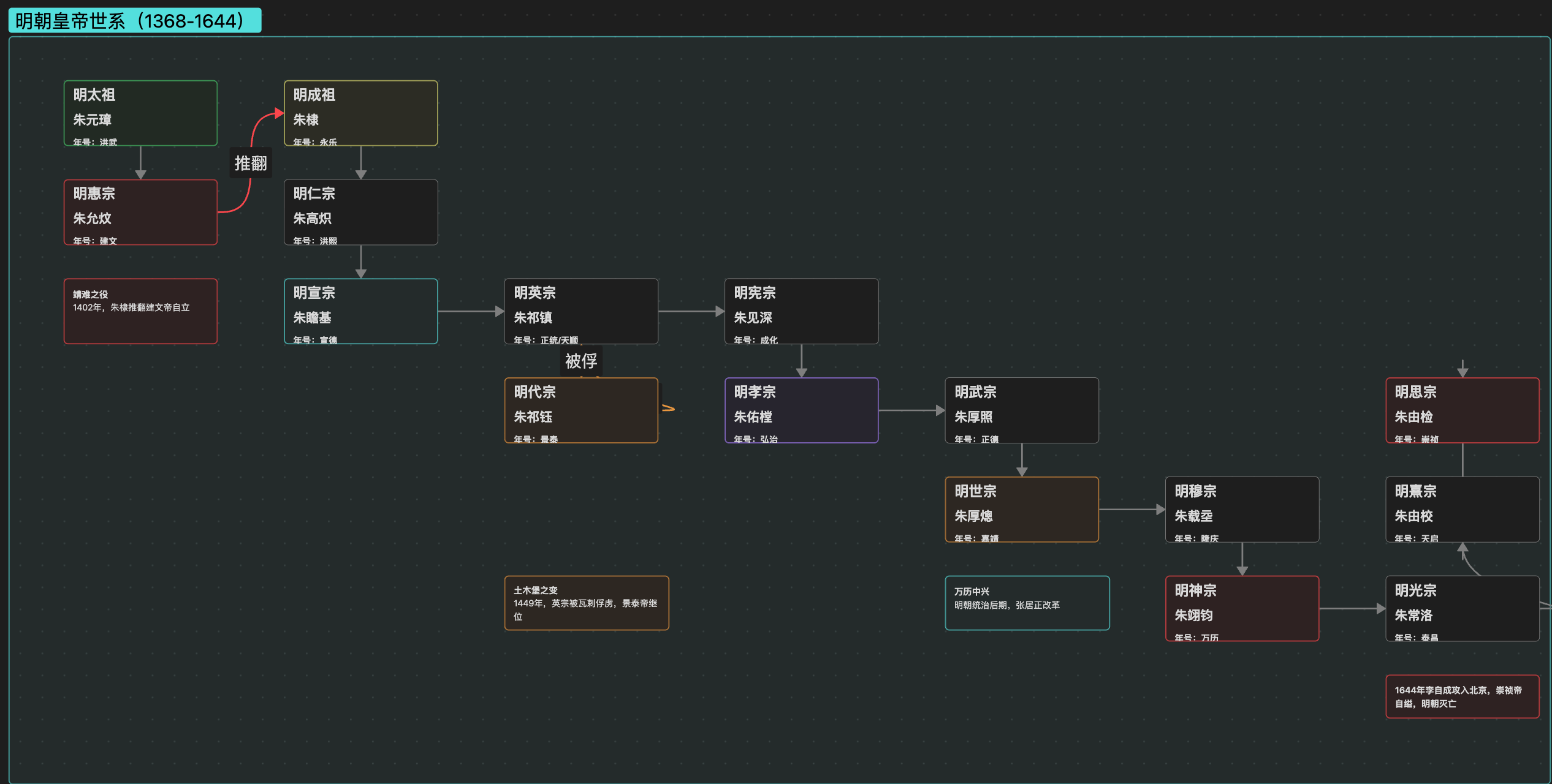 专为 Obsidian 准备的 Skills。由Obsidian CEO开源,目前为止有3个Skill。分别为 Obsidian Flavored Markdown 、Obsidian Bases 、JSON Canvas。例如,我想生成中国历史朝代关系。直接说: